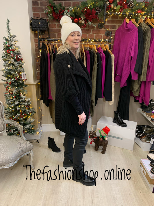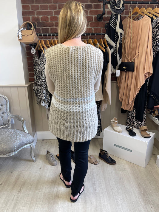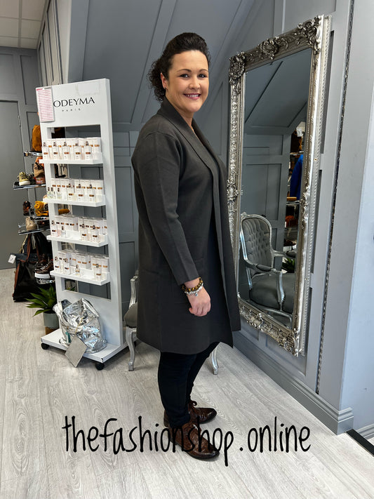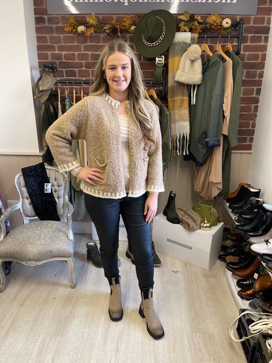 Premium dark beige wool mix knitted jacket with blanket stitch effect 8-16