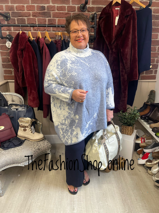 Sarah Tempest denim blue and cream asymmetric hem jumper 14-24
