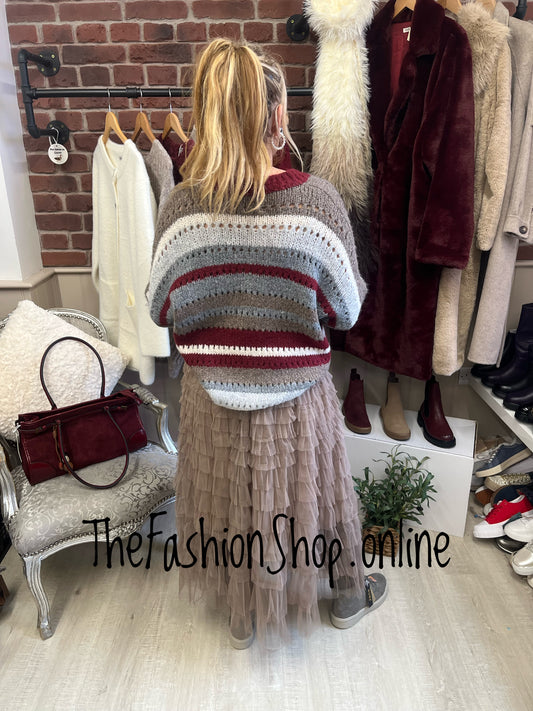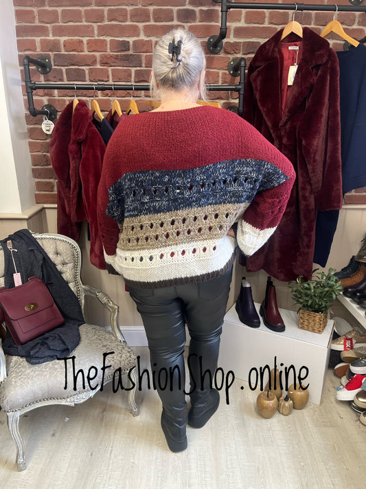 Sarah Tempest wine and navy wool mix jumper 12-22