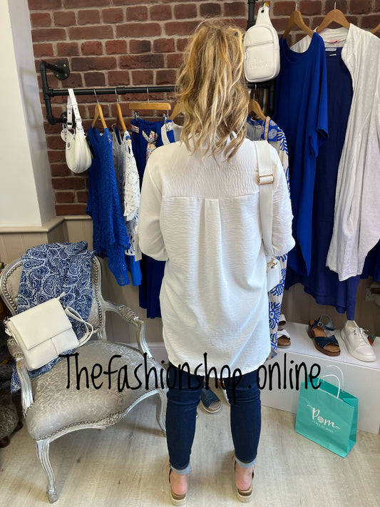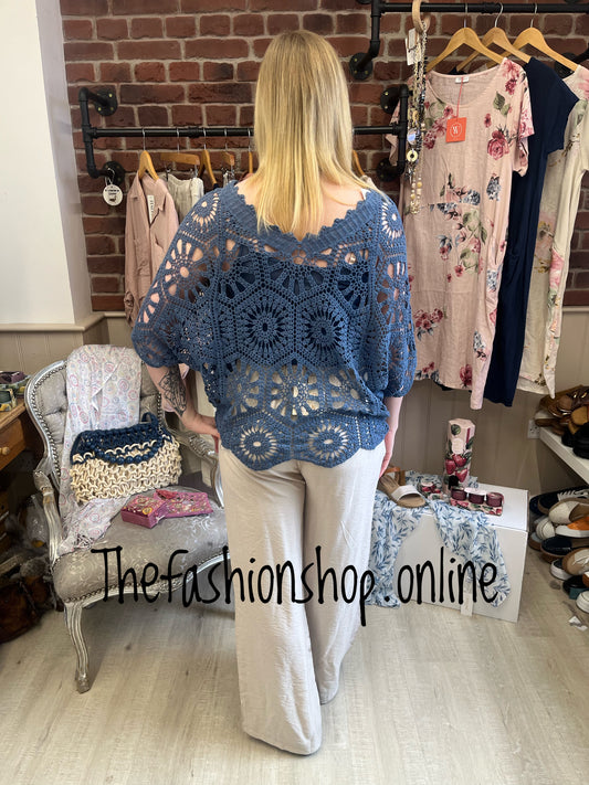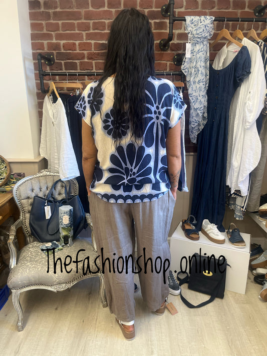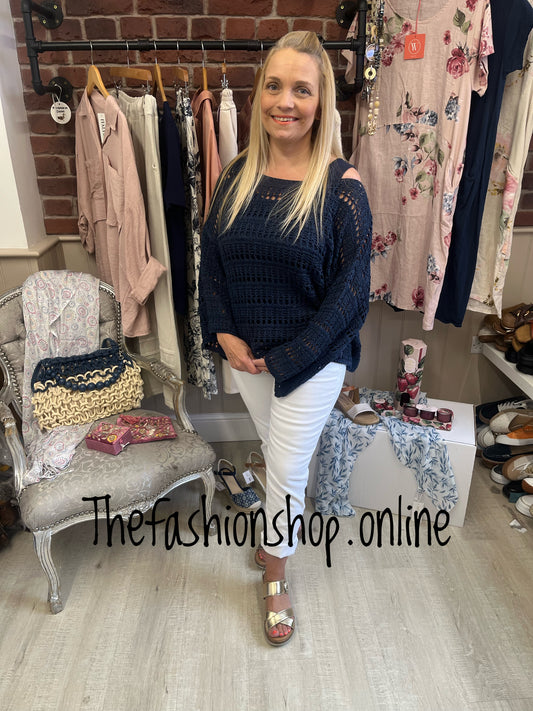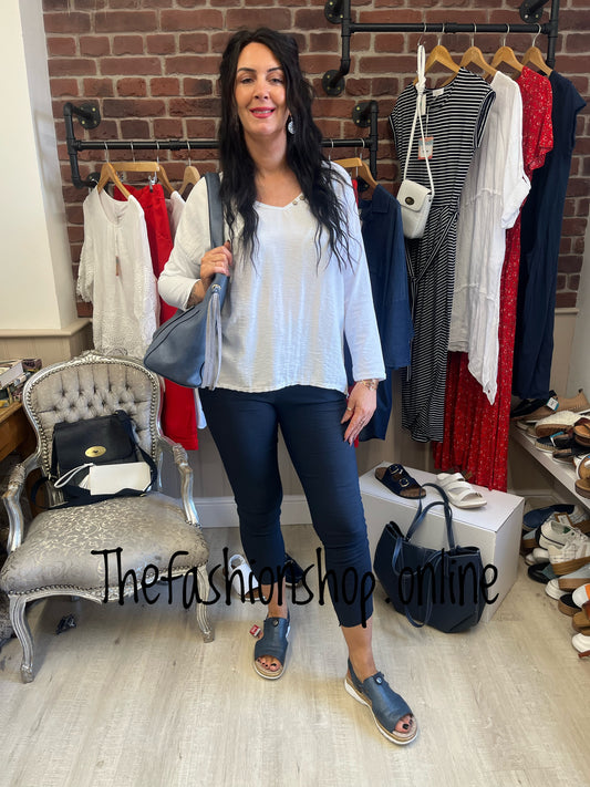 Abigail navy and cream top sizes 10-12, 14-16 and 18-20