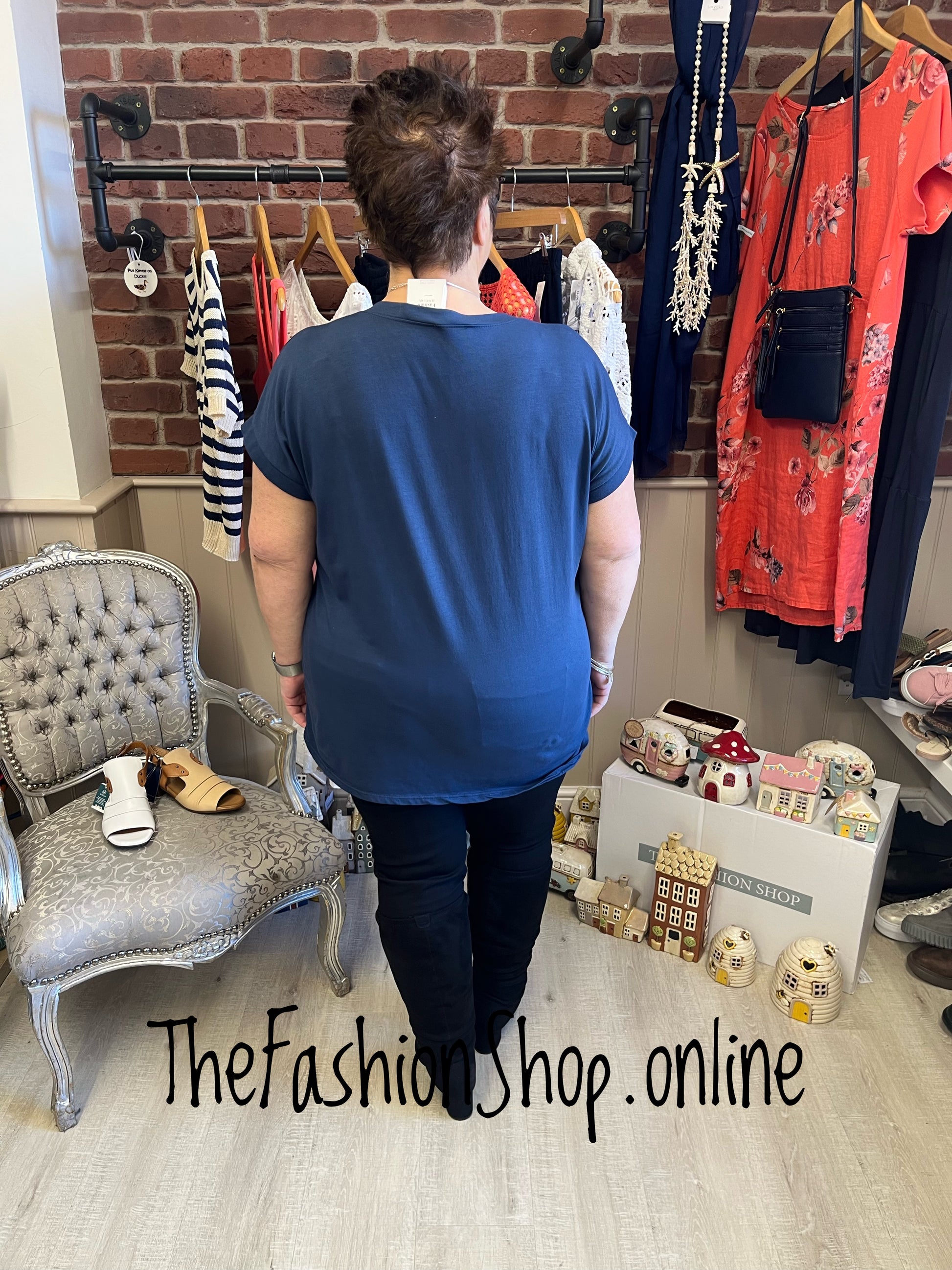 Meet a dependable everyday t shirt crafted for comfort and lasting wear in the 14–22 size range. The Anita navy cotton T-shirt combines a soft, breathable fabric with a touch of stretch to keep its shape while moving with you from morning errands to evening unwind.