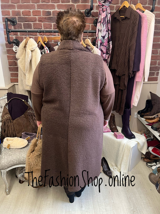 Frankie Teddy Long Waistcoat in Chocolate Brown 18-24