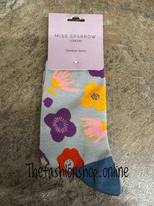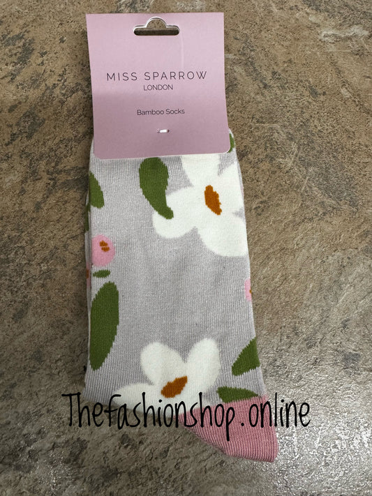 Miss Sparrow Silver Modern Floral Bamboo socks 3-7