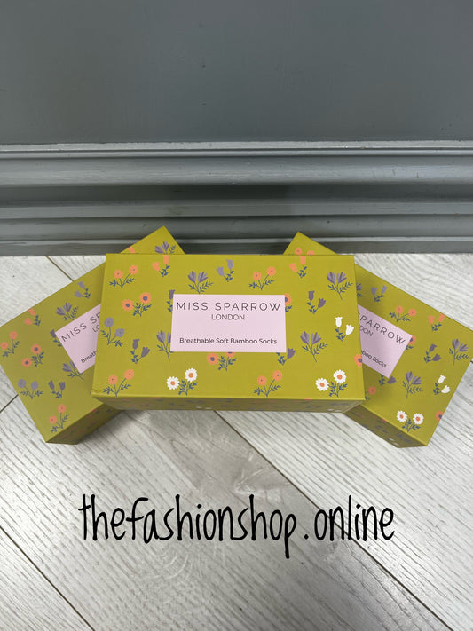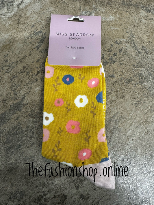 Miss Sparrow Yellow Floral Pattern Bamboo socks 3-7