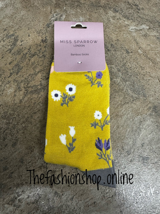 Miss Sparrow Yellow Dainty Floral Bamboo socks 3-7