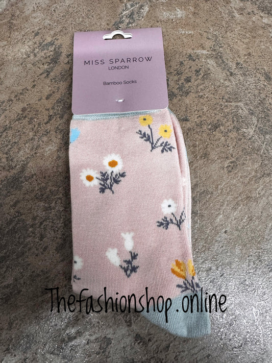 Miss Sparrow Dusky Pink Dainty Floral Bamboo socks 3-7