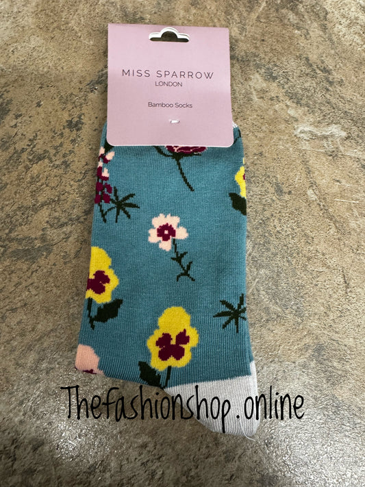 Miss Sparrow Duck Egg Dainty Floral Bamboo socks 3-7