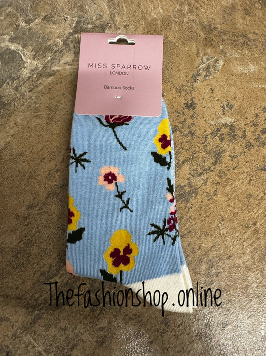 Miss Sparrow Powder Blue Botany Study Bamboo socks 3-7