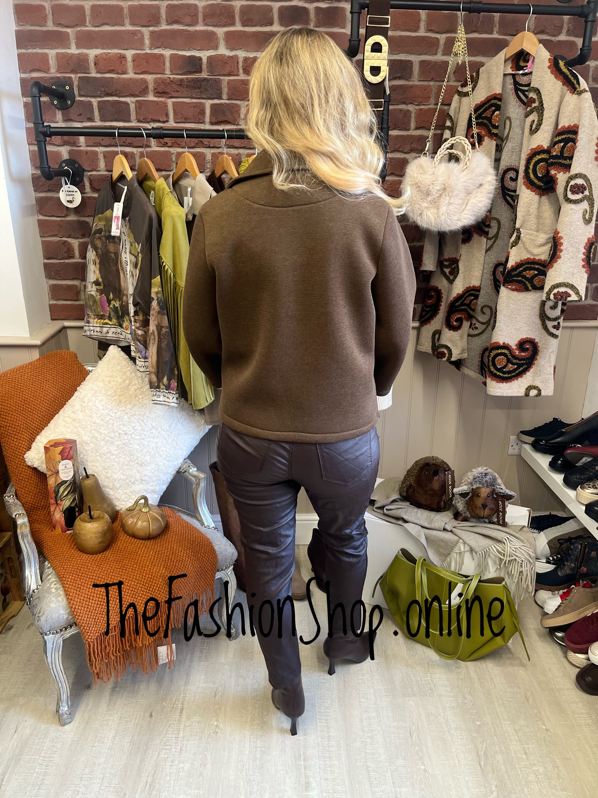 Meet the Cathy brown jacket with brooch, a refined essential that transitions from office to evening with effortless polish. This tailored piece blends classic design with a modern stretch for all-day comfort.