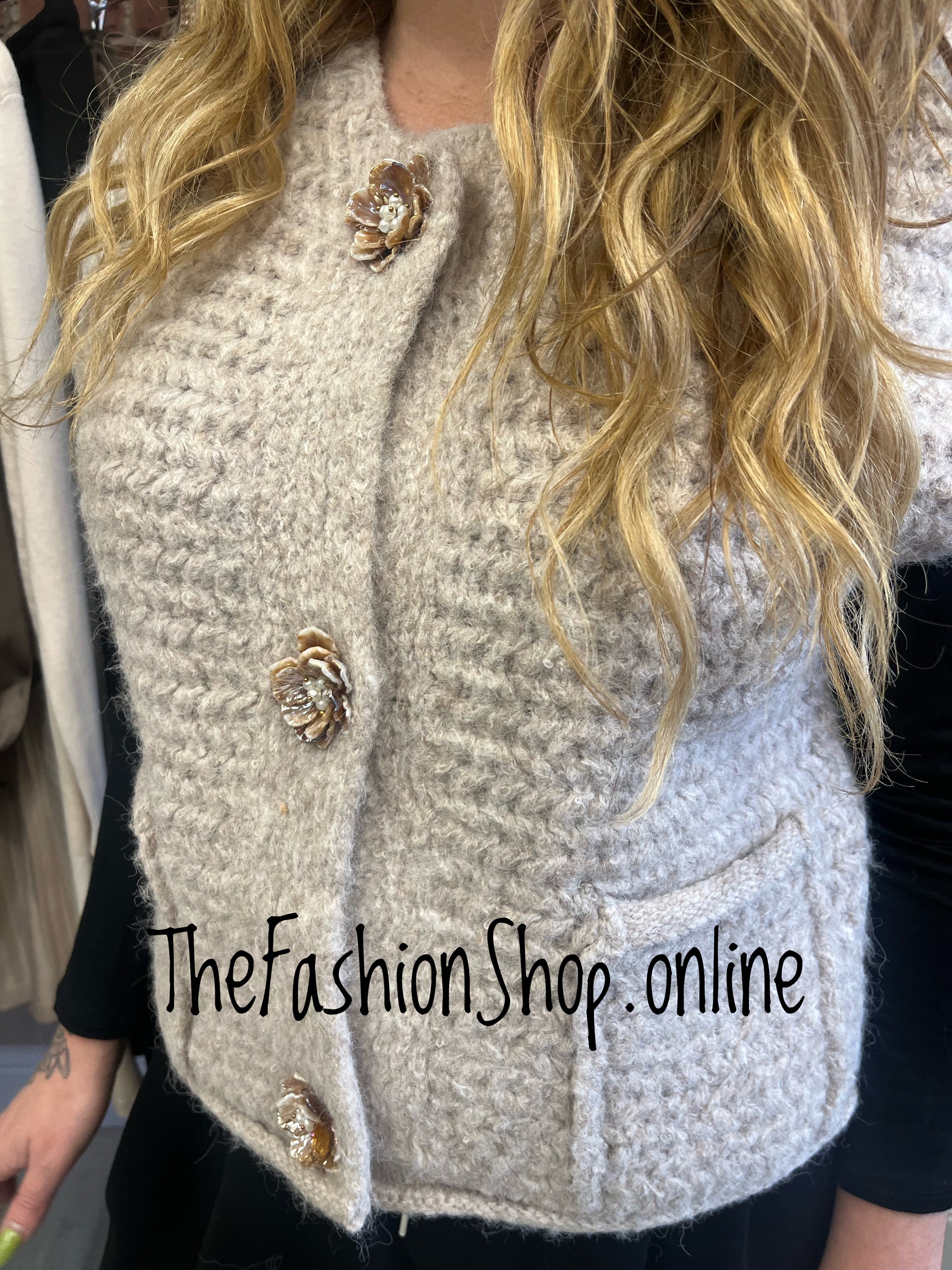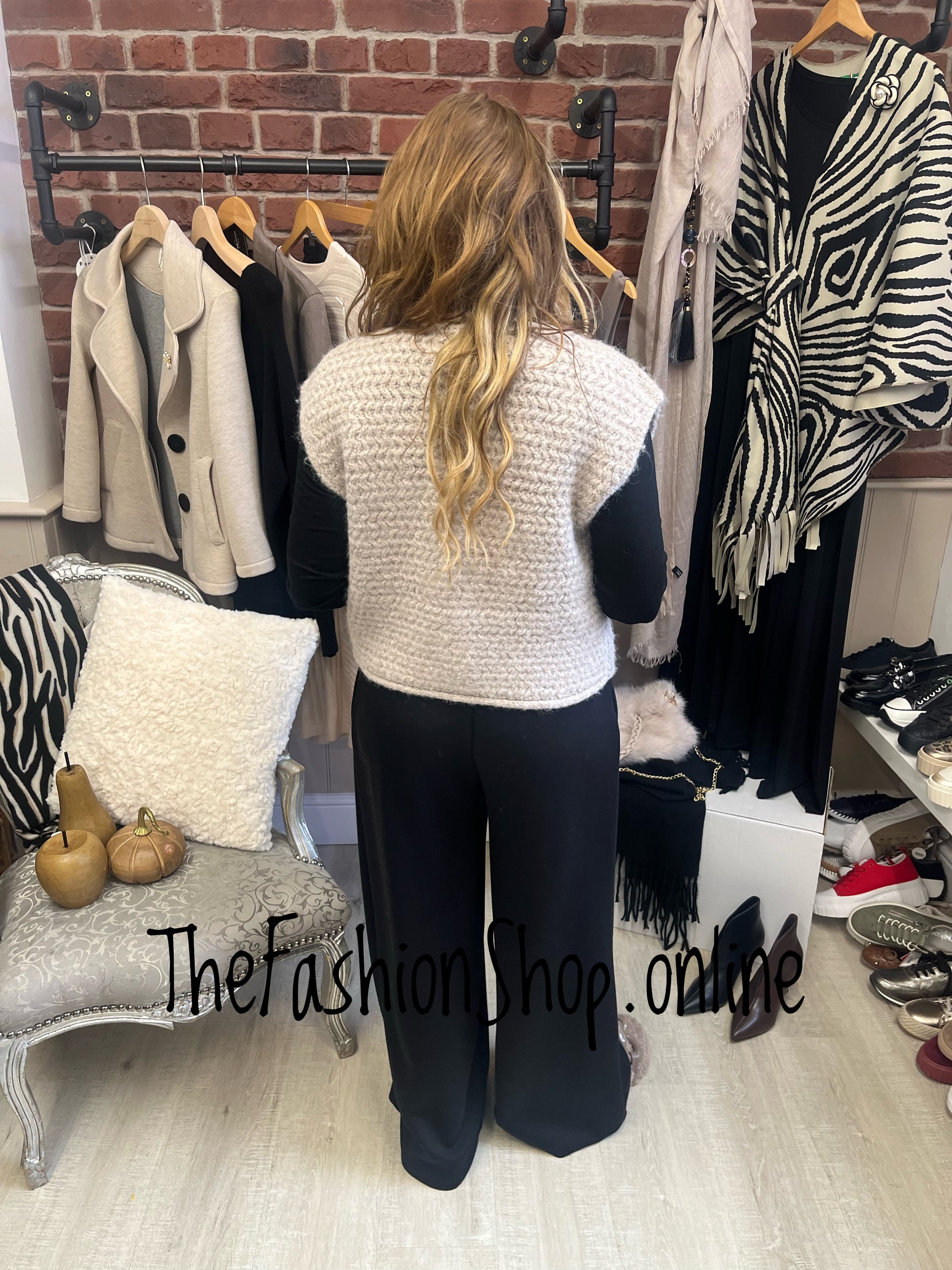 Leah beige wool mix chunky knitted waistcoat 8-14