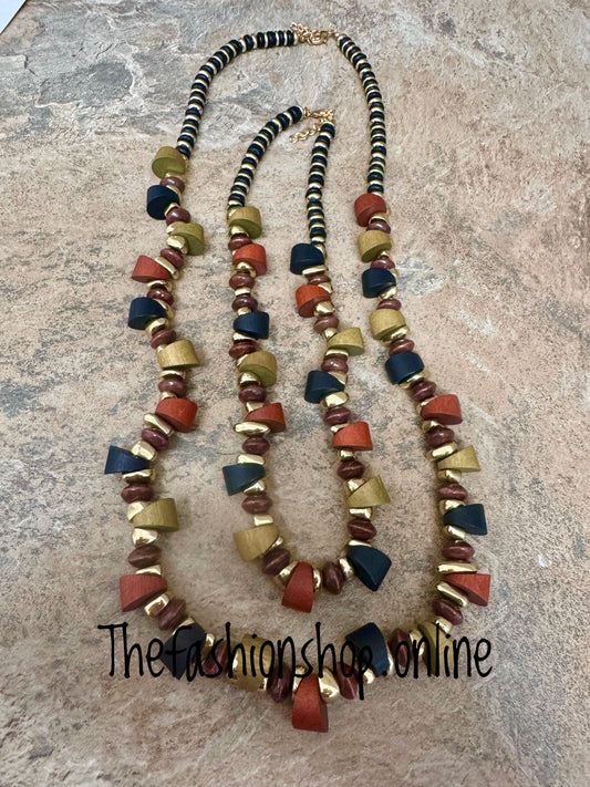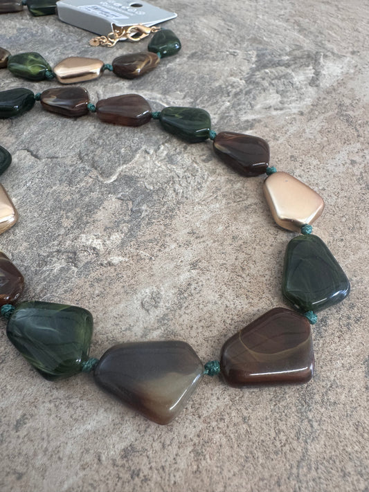 Tasmin Green Camel, Browns and Gold Pebble Necklace