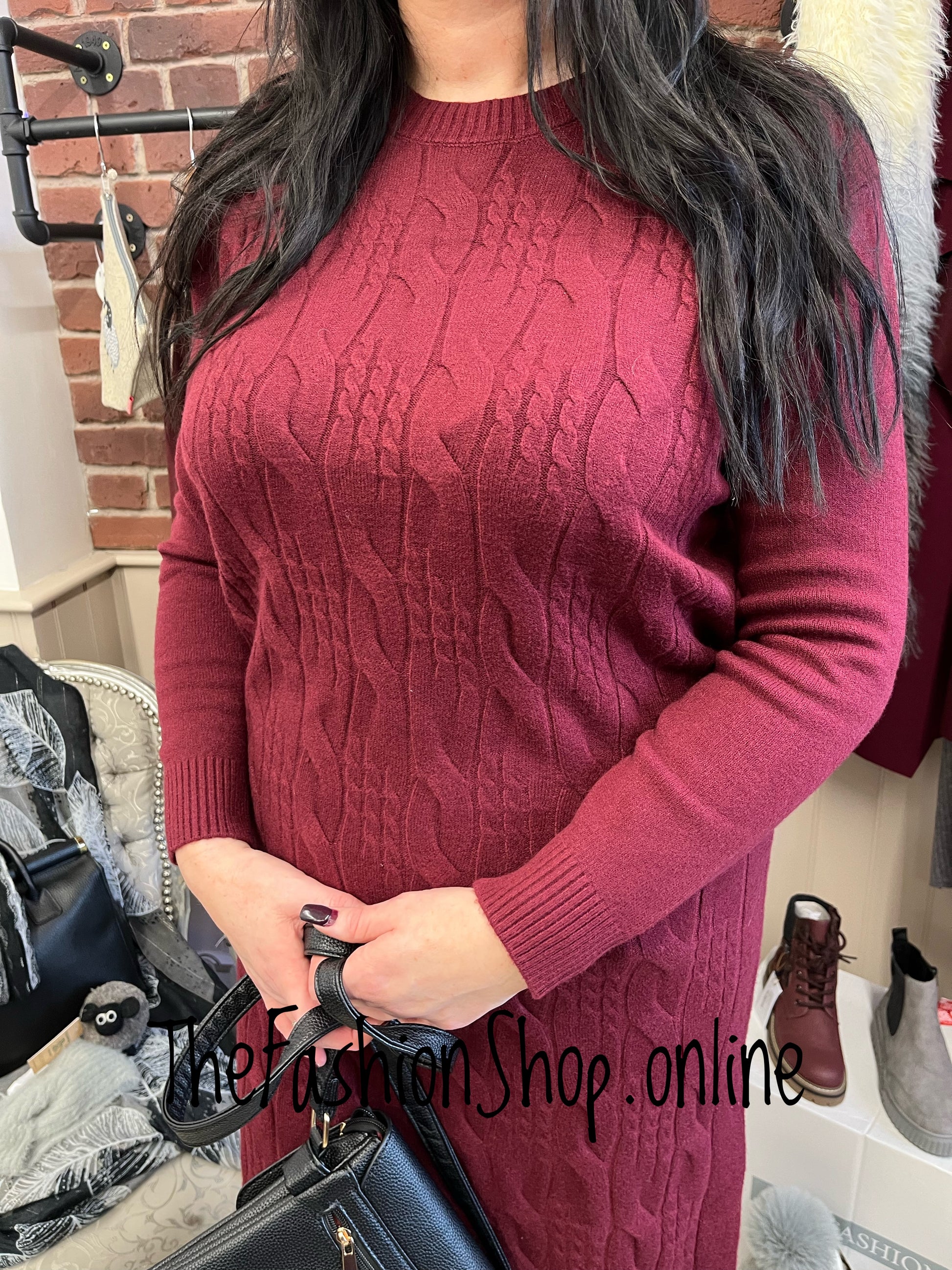 Alison wine cable knit jumper dress 14-18