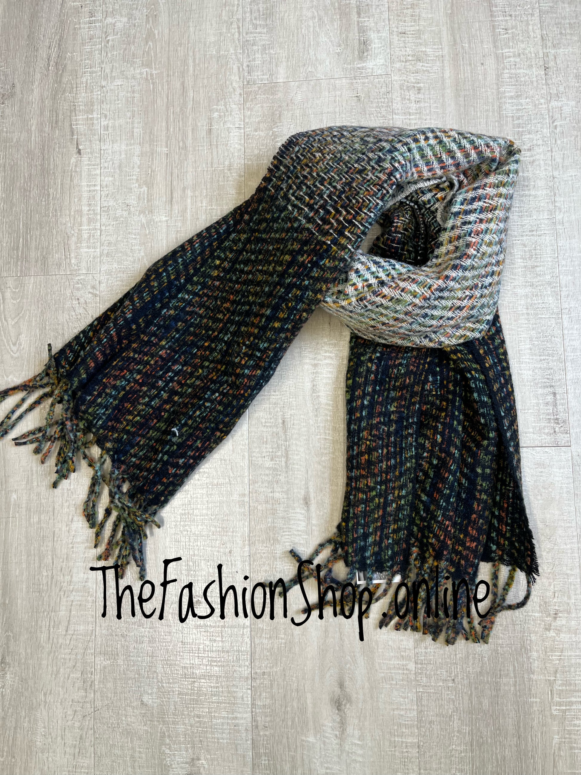 Designed for effortless wear, the scarf features a smooth gradient that transitions between black and cream tones, making it a versatile accessory for every season. The playful tassels add movement and charm, while the durable weave is built to keep you cosy and looking chic wash after wash.