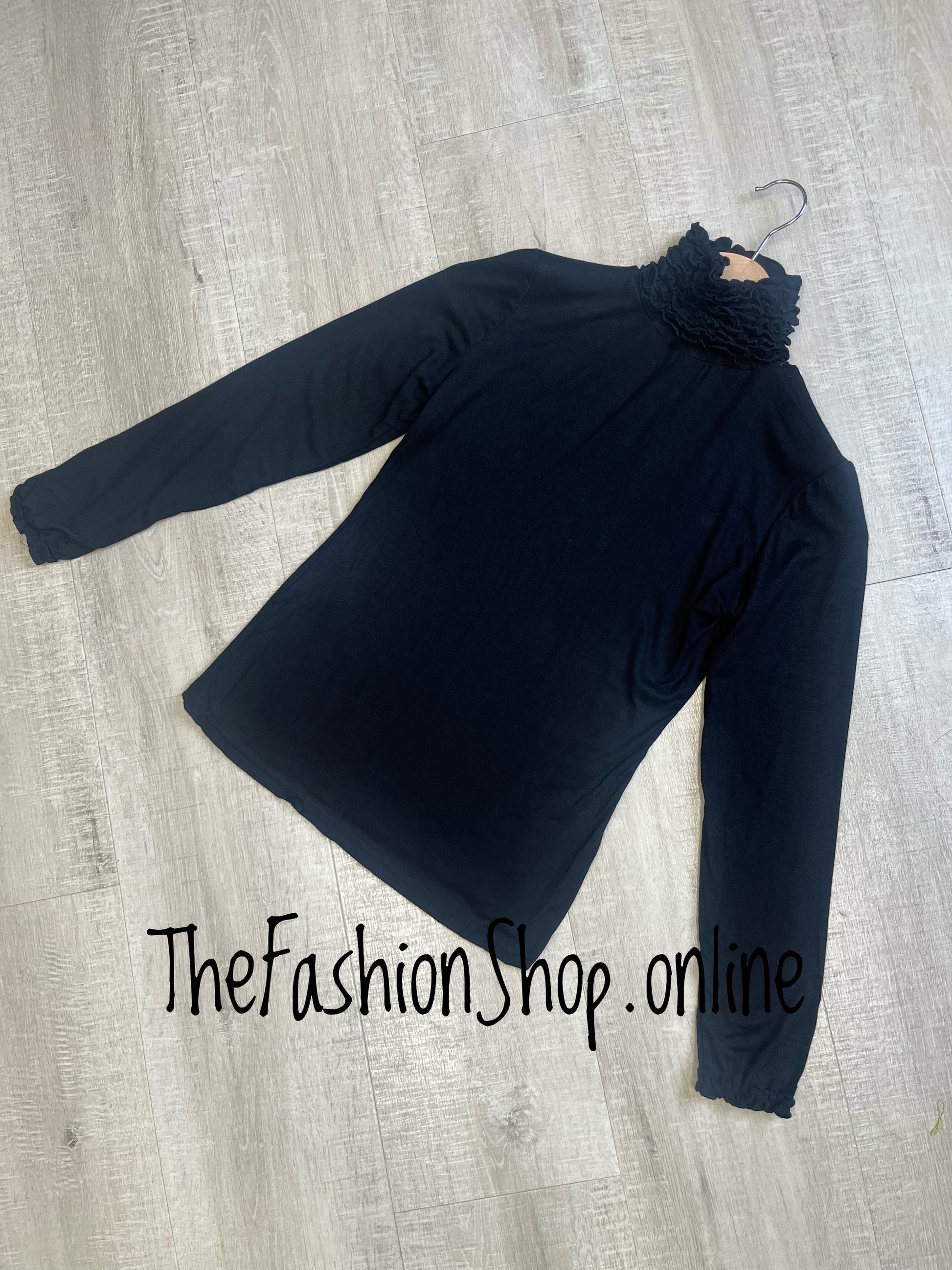 Heidi Black Ruffle-Neck Polo Top 8-10