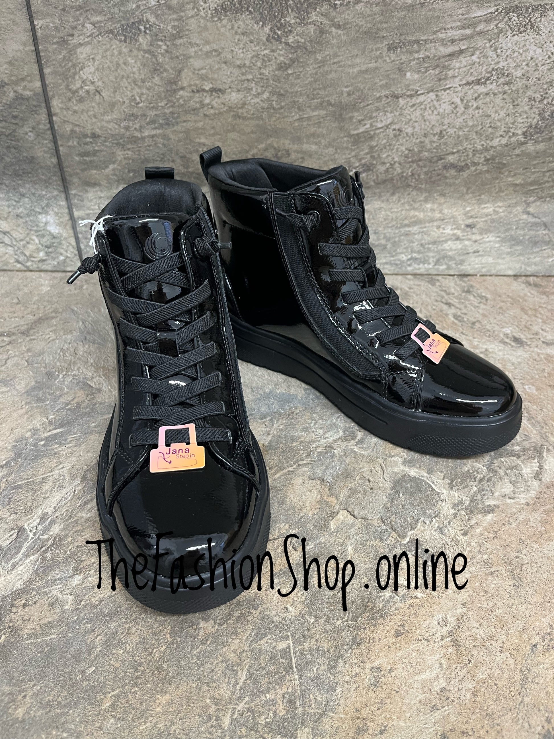 Jana black patent step in ankle boot sizes 4-8 (37-42)