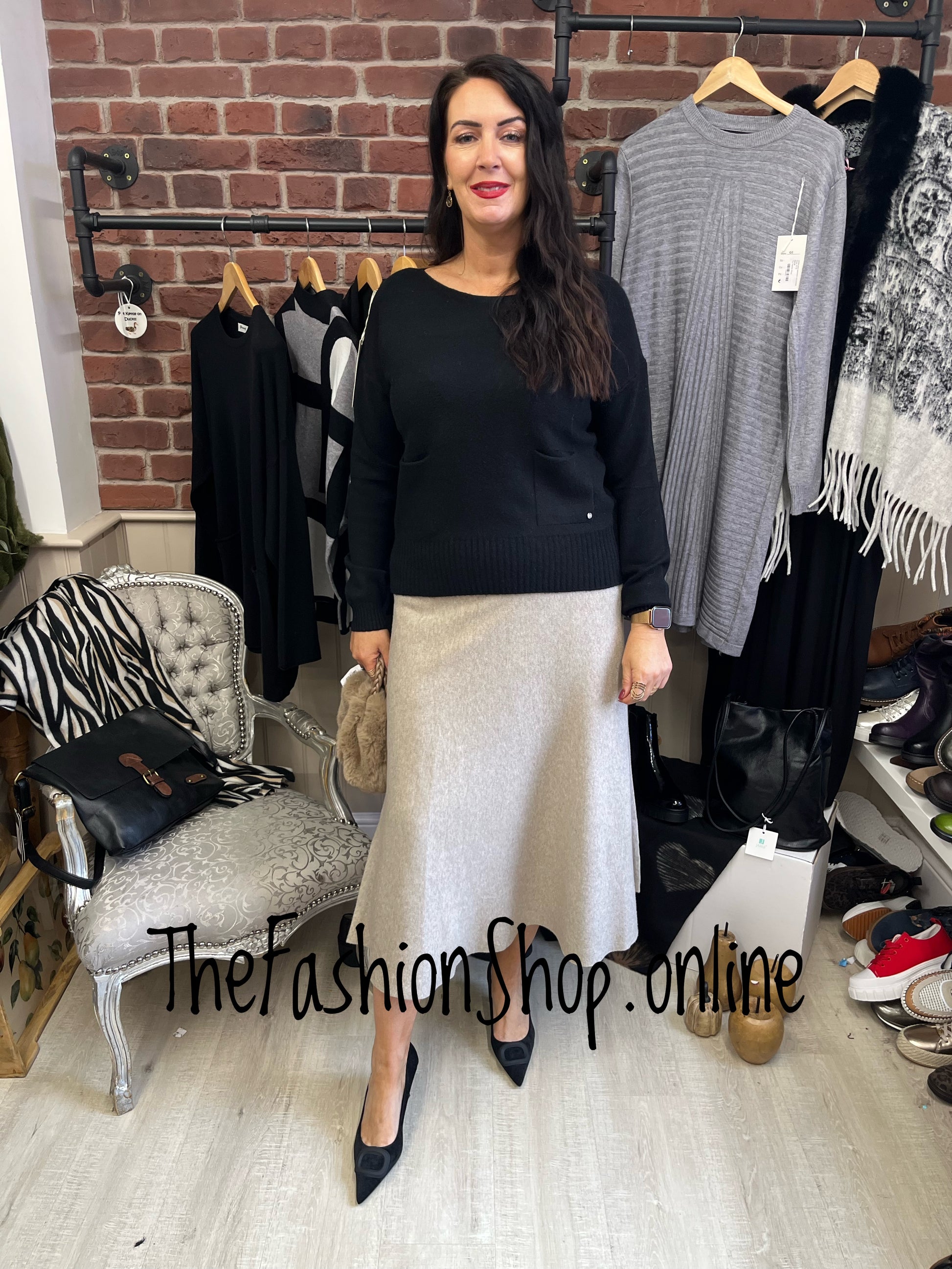 Step into versatile knitwear with the Jess Black Twin Pocket Jumper, a practical and flattering staple designed for layering. This black jumper pairs effortlessly with denim, skirts, boots, or trainers for everyday style.