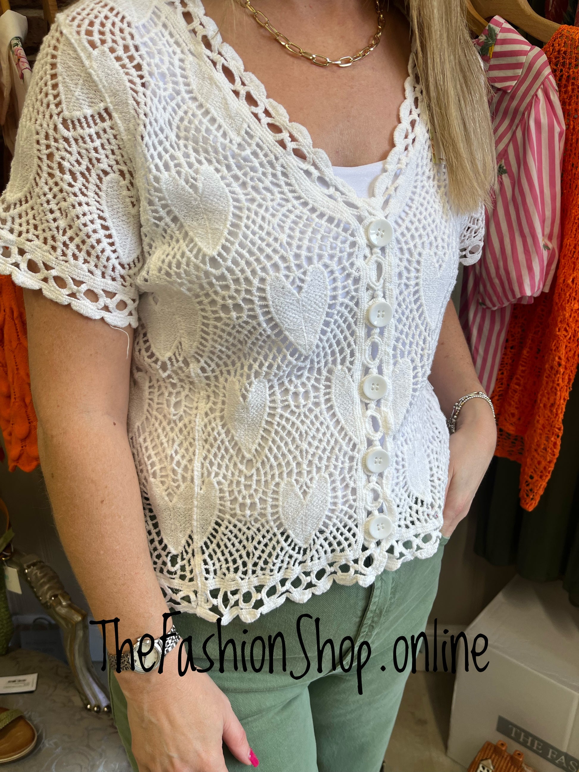 Elevate your wardrobe with a top that blends timeless elegance with everyday versatility. The Karla white hearts crochet top is crafted from 100% cotton, delivering breathable comfort that keeps you feeling fresh from desk to dinner. The fresh white flatters all skin tones and pairs effortlessly with tailored trousers or casual denim.