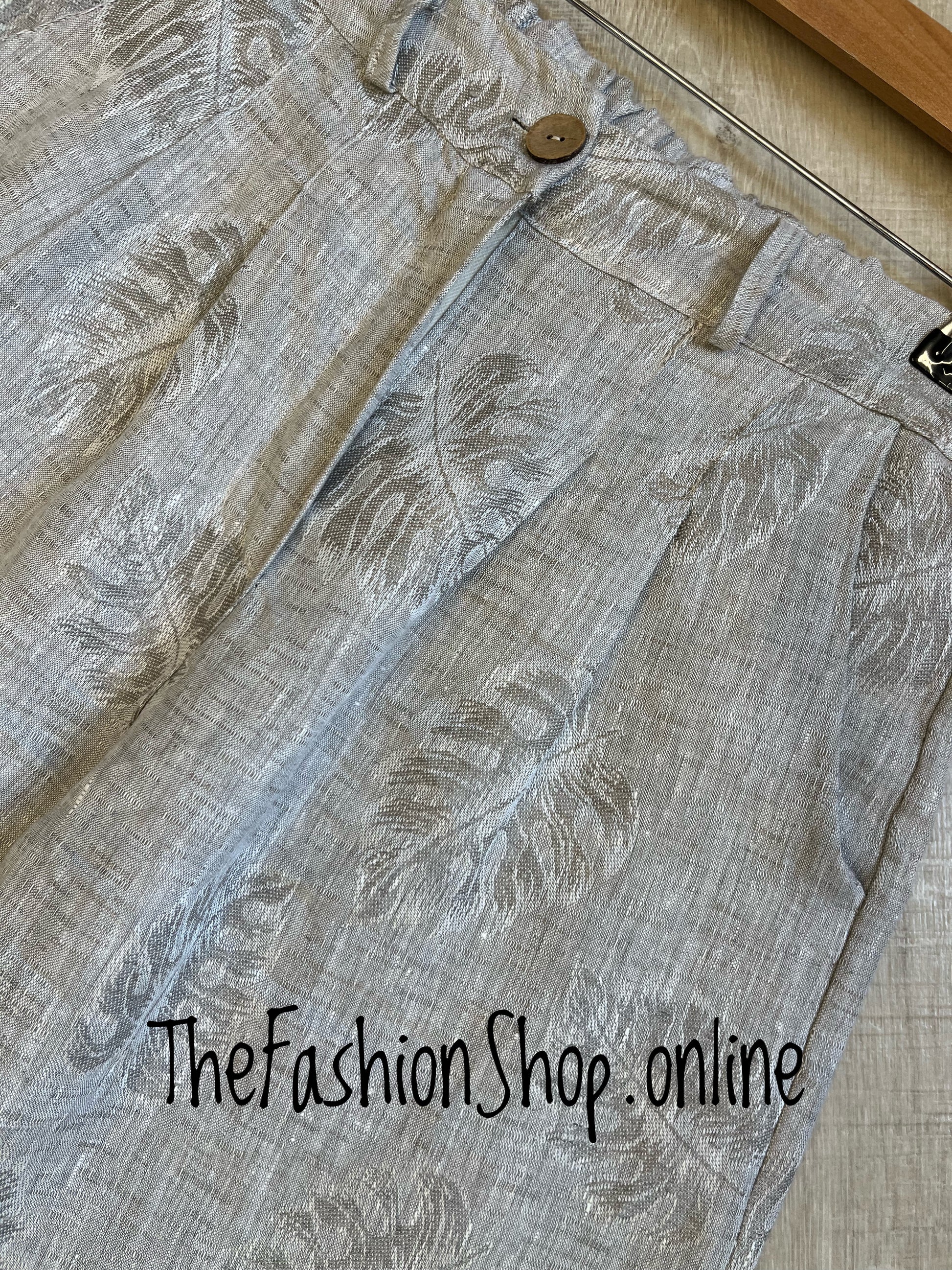 Introducing the Macey stone linen trousers—a light, breathable layer designed for warm days and refined evenings. Crafted from 100% linen, they drape beautifully and keep you comfortable in active moments or longer events. The mocha/stone colour provides a timeless base, while a subtle leaf print adds a touch of botanical charm that stays sophisticated rather than flashy.