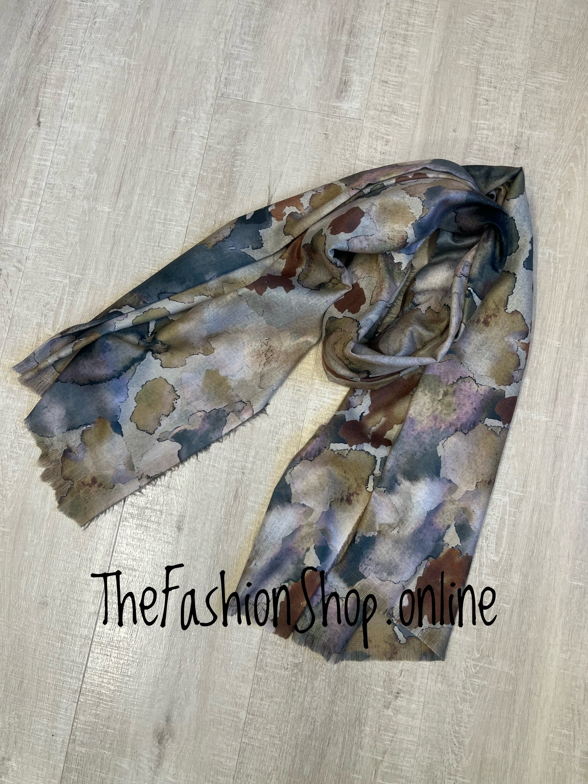 Featuring earthy watercolor-inspired tones, this scarf effortlessly elevates any outfit — from casual weekends to dressier occasions. The versatile design blends seamlessly with neutrals and adds a gentle pop of colour to your look.