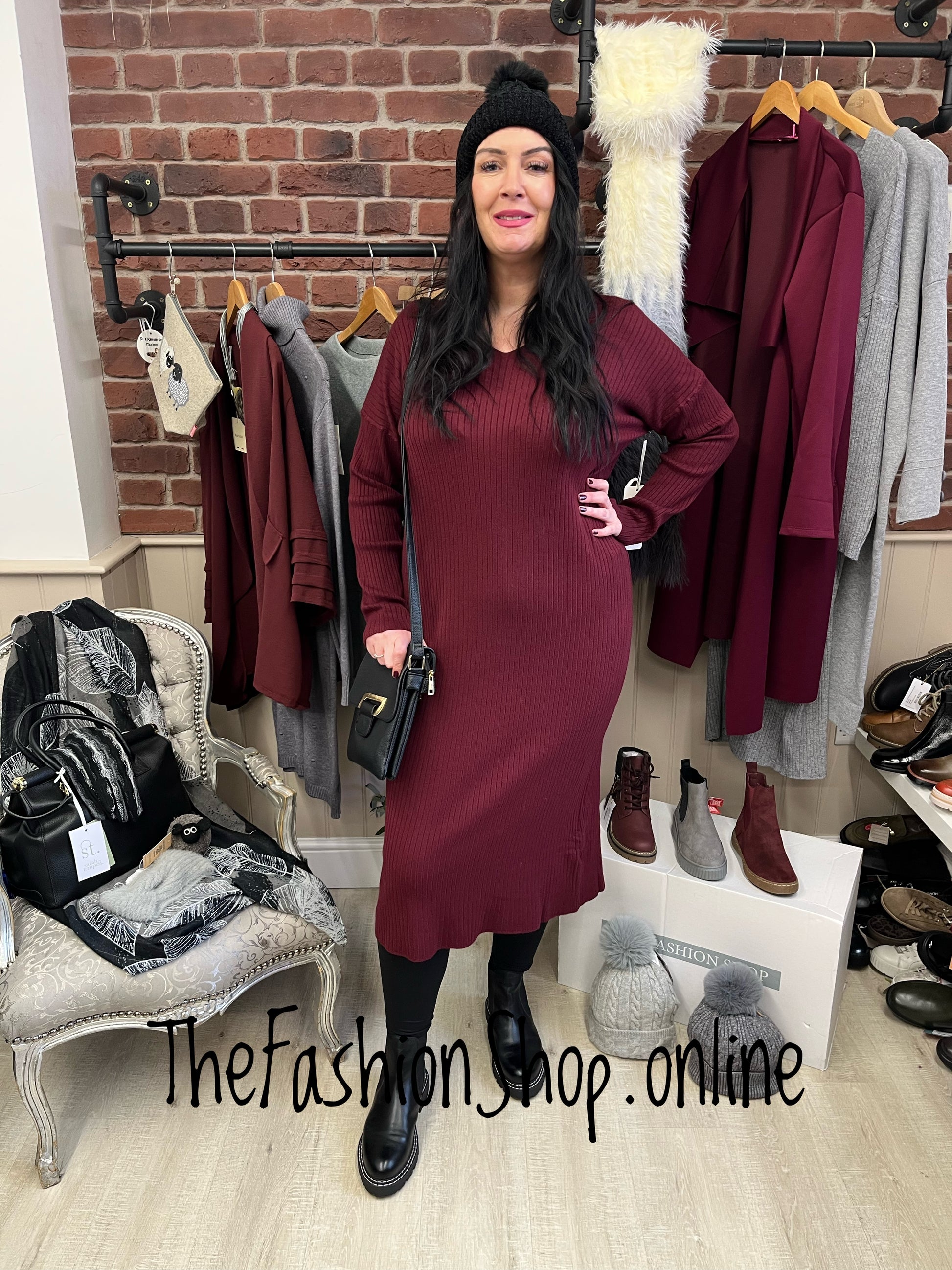 Violet Wine V-Neck Ribbed Dress — Size 14-18