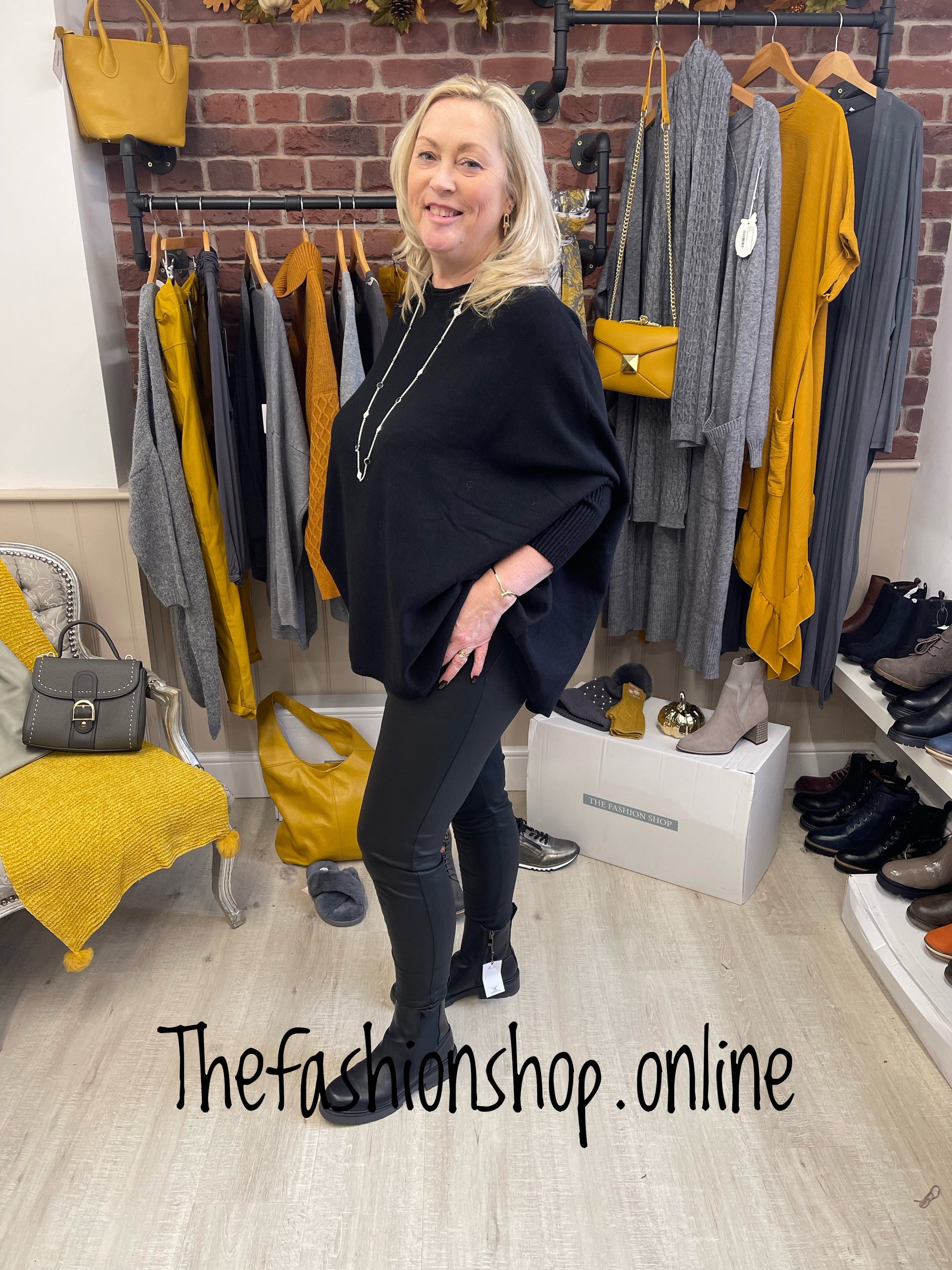 In classic black, this beautifully soft jumper is a winter wardrobe staple and is timeless in style. the ribbed sleeves finish it off perfectly and this makes a great layering piece. It measures approx 34" from shoulder to hem line and 66" across the bust and hips.
