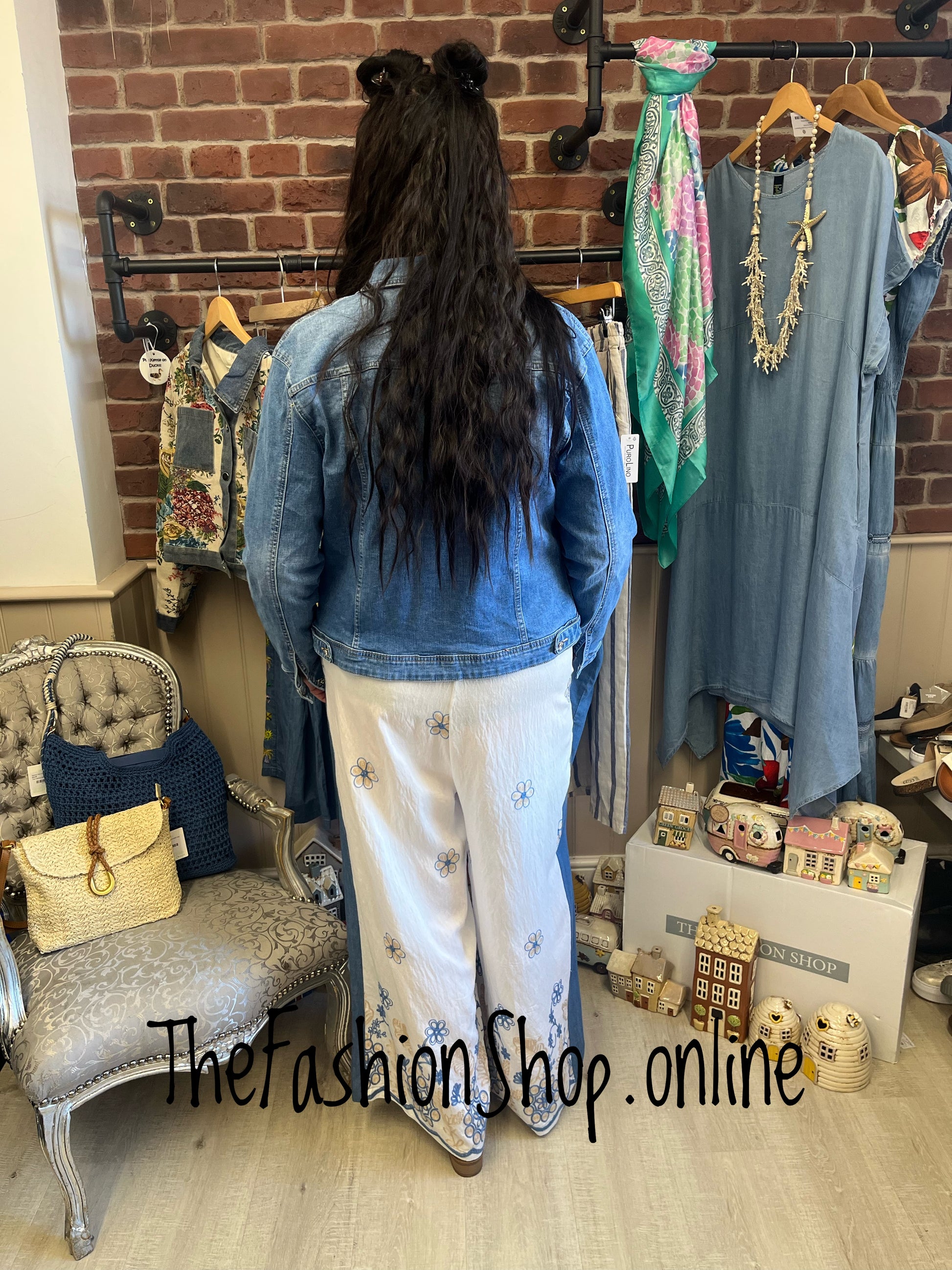 Fly Out Embroidered Wide-Leg Trousers Size 10–16