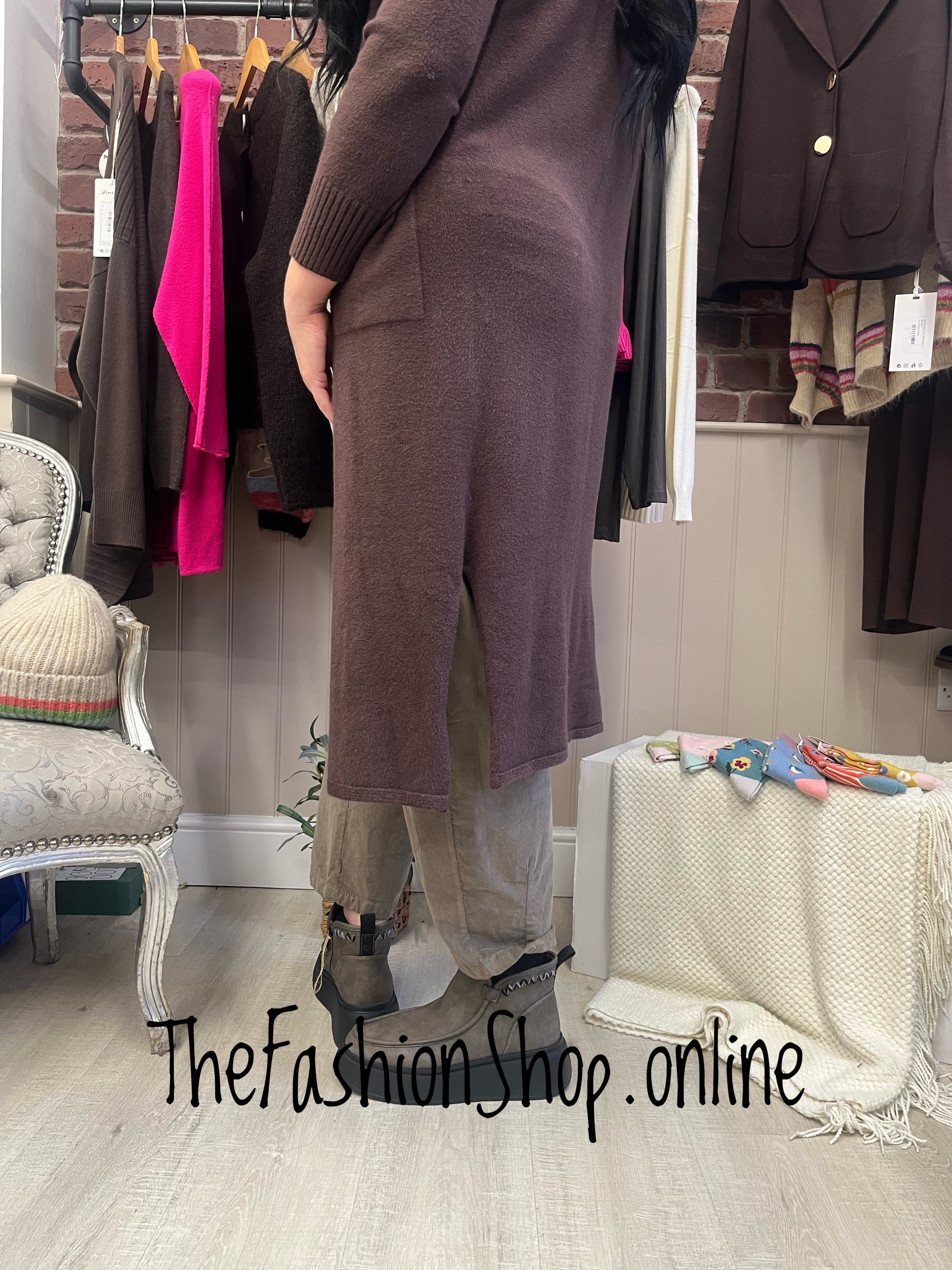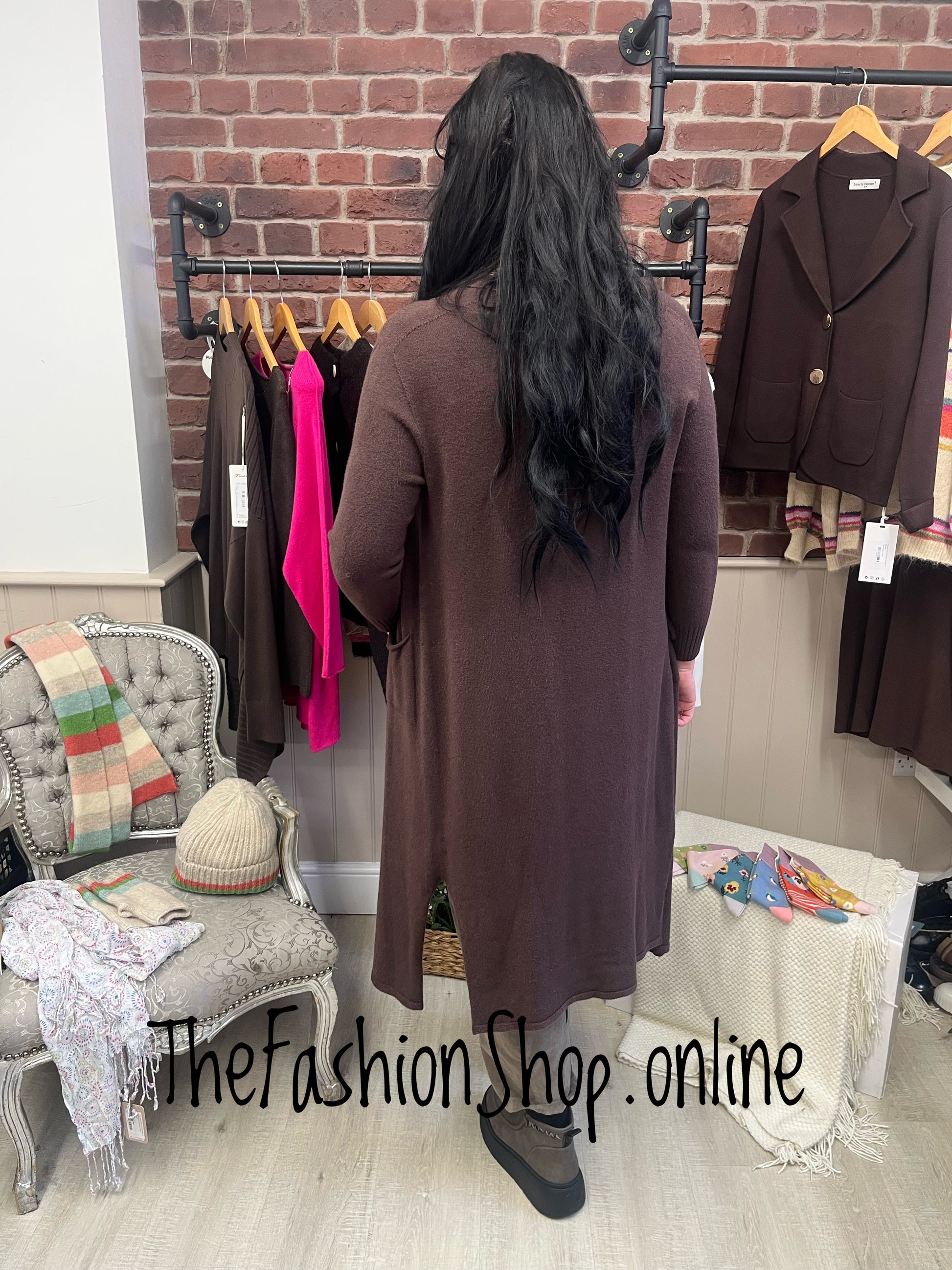 Milan Brown Longline Cardigan (Sizes 8–16): Refined Warmth for Work-to-Weekend