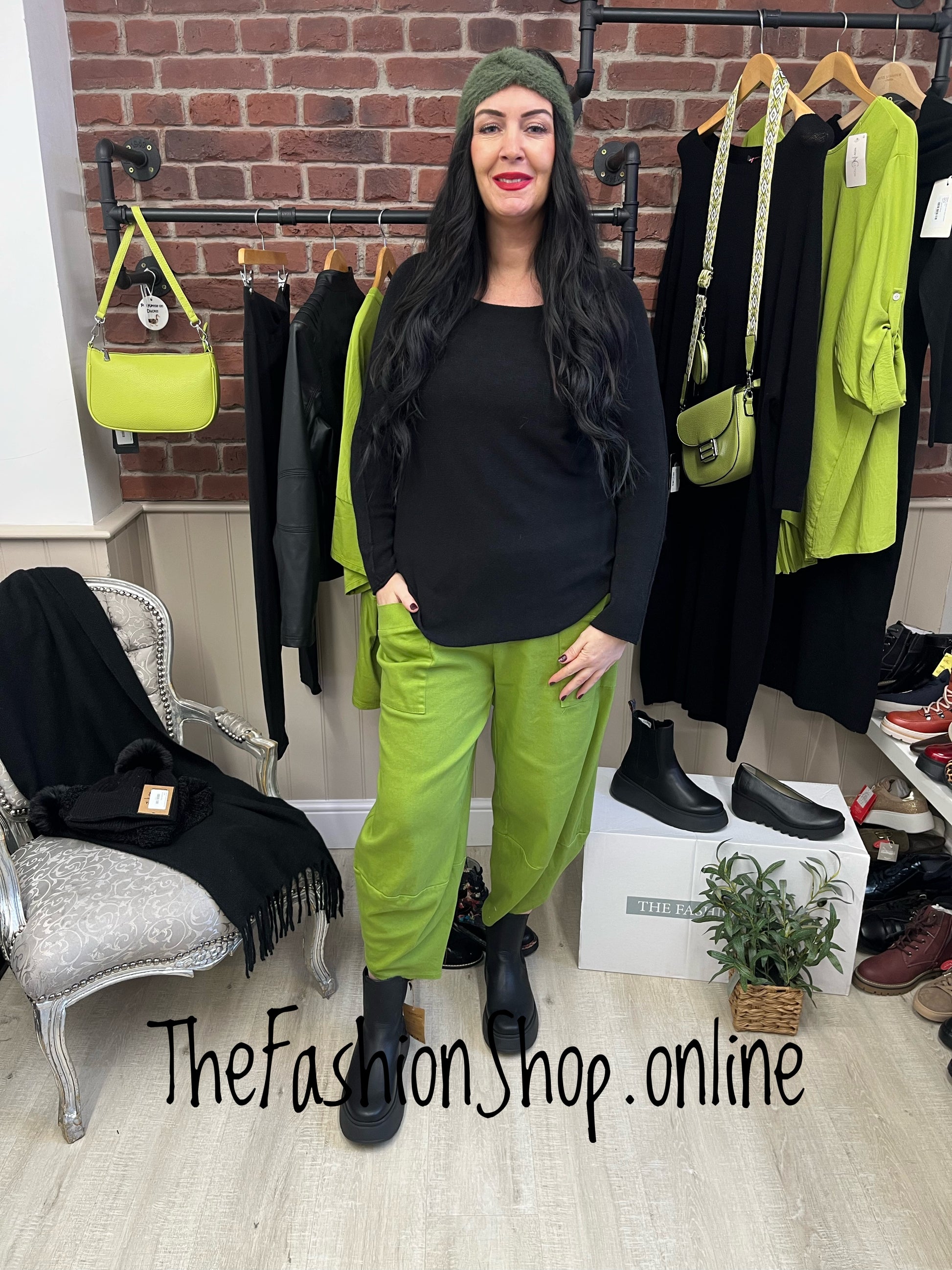 Meet your new go-to pants in a versatile green shade that pairs beautifully with neutrals and denim. Crafted from a soft, breathable blend of 97% cotton and 3% elastane, these trousers offer just the right amount of stretch to move with you—from morning errands to weekend adventures. They have two large pockets, an elasticated waistband and funky seam detailing.